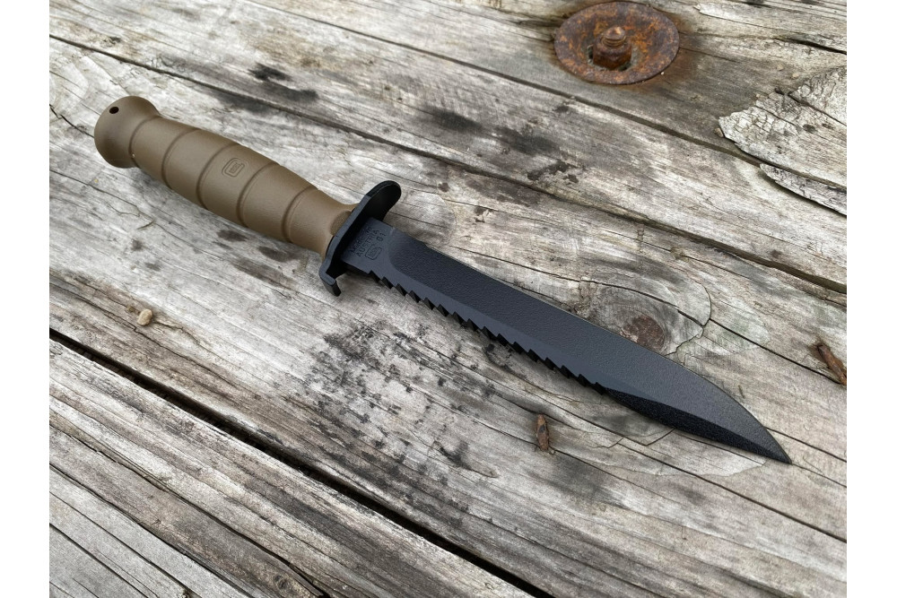 Rukoväť a puzdro noža sú vyrobené z rovnakého materiálu, ako polymérové tela pištolí Glock, ktoré sú vyhlásené svojou spoľahlivosťou a odolnosťou.