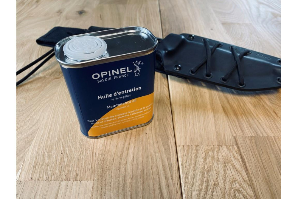Rastlinný olej Opinel sa používa na mazanie čepelí a objímok nožov a tiež na ošetrenie drevených rukovätí a dosiek na krájanie. Jeho použitie je ľahké. Po očistení a osušení noža mäkkou, suchou handričkou jednoducho naneste niekoľko kvapiek oleja na handričku a utrite čepeľ aj objímku. Pred zatvorením noža počkajte, kým čepeľ neuschne. Rukoväť by mala byť rovnomerne naolejovaná niekoľkými kvapkami oleja na handričke.