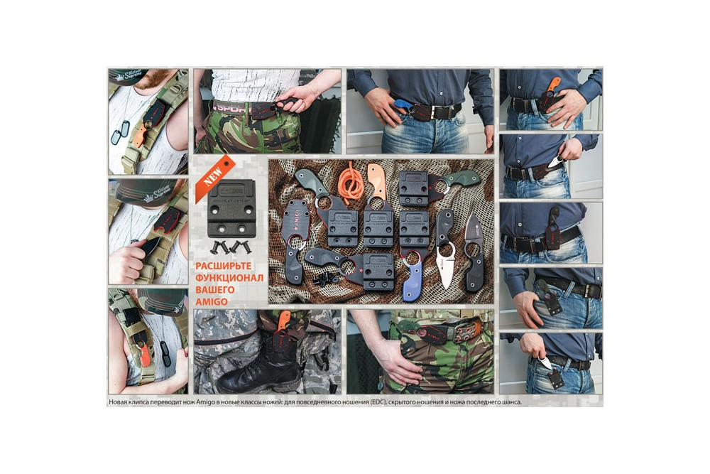 Klip dodáva nožmi Amigo úplne úžasné možnosti nosenia, či už na obuvi, pásku, batohu či taktické veste, nôž je ihneď pripravený k požitiu, presne tam kde ho potrebujete mať.