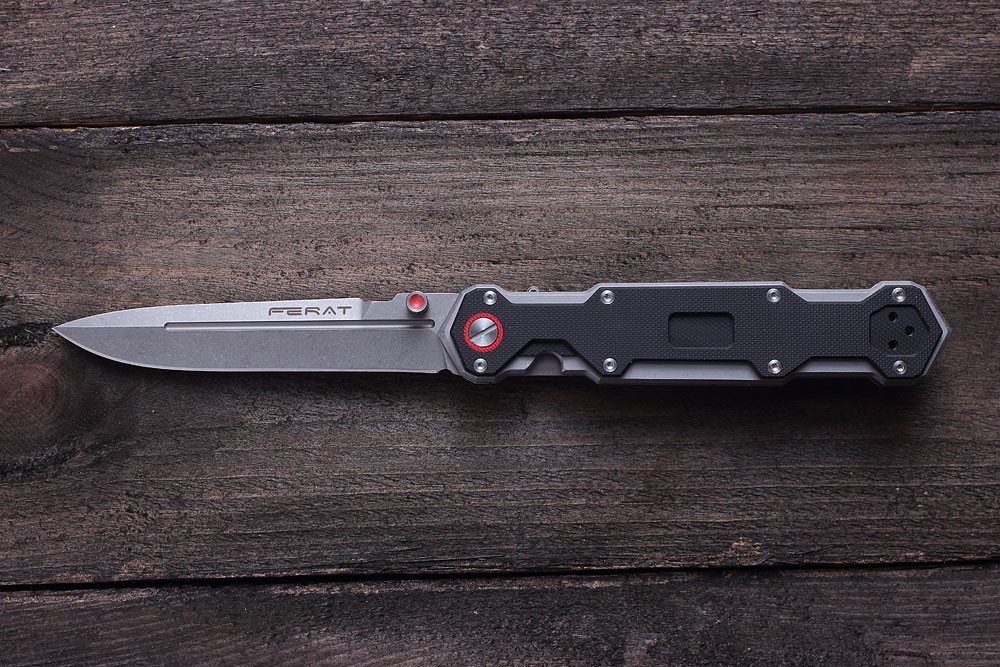 Ferat je zatváracími nôž s exkluzívnym bojovým dizajnom, jedná sa o veľký nôž, ktorý vďaka uzamykateľné poistke dokáže z časti nahradiť i pevný nôž vo skladnom balení. Čepeľ Feratu je z perfektný ocele D2.